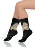 Модные носки стандартной длины для девочек. Носки сделаны из высококачественного хлопкового трикотажа. Они украшены очень красивым принтом с собакой и её характерными следами.