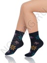 Уплотнённые носки для девочек. Модель имеет длину чуть короче классической. Носки украшены ярким принтом с цветами и бабочками.