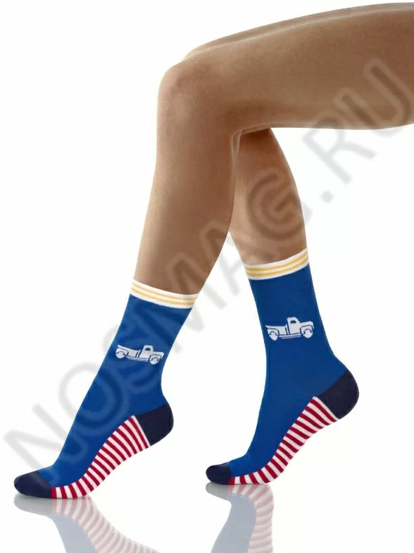 Очень стильные носки для мальчиков. Они декорированы принтом с машиной, а также сочетанием разноцветных полосок. Данные носки смотрятся очень оригинально!