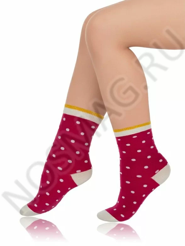 Очень красивые носки для девочек. Они украшены принтом, а также контрастной пяткой, носком и манжетами. Такие носки отлично подходят как для дома так и под обувь.