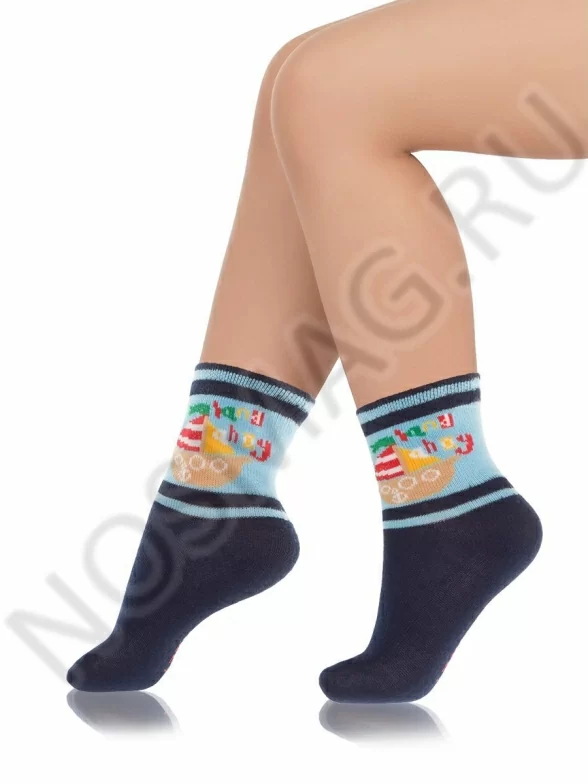 Оригинальные трикотажные носки для мальчиков, декорированные принтом с корабликом. Модель смотрится стильно, а мягкая резинка и качественный трикотаж делают их очень удобными.