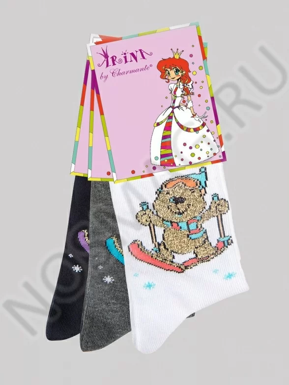 Оригинальные носки для девочек. Они украшены принтом с мишкой на лыжах. Носки очень удобны, а их узор хорошо сочетается с зимней одеждой.