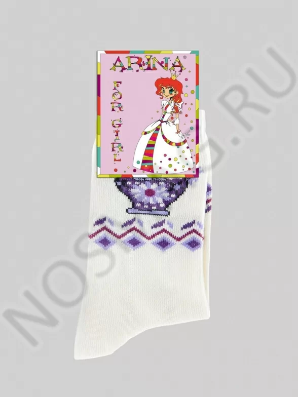 Оригинальные носки для девочек, выполненные из высококачественного хлопкового трикотажа. Модель стандартной длины. Носочки украшены колоритным принтом, дополненным орнаментом.