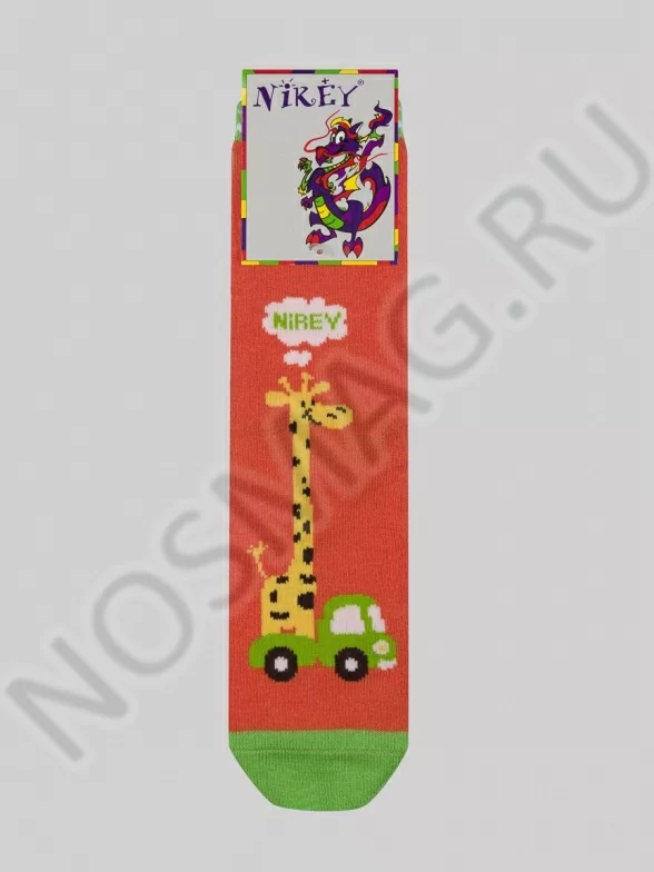 Очень яркие детские носки с принтом, изображающим жирафа на грузовой машине. Носки очень красочные и стильные, а их дизайн подойдёт как девочкам, так и мальчикам.