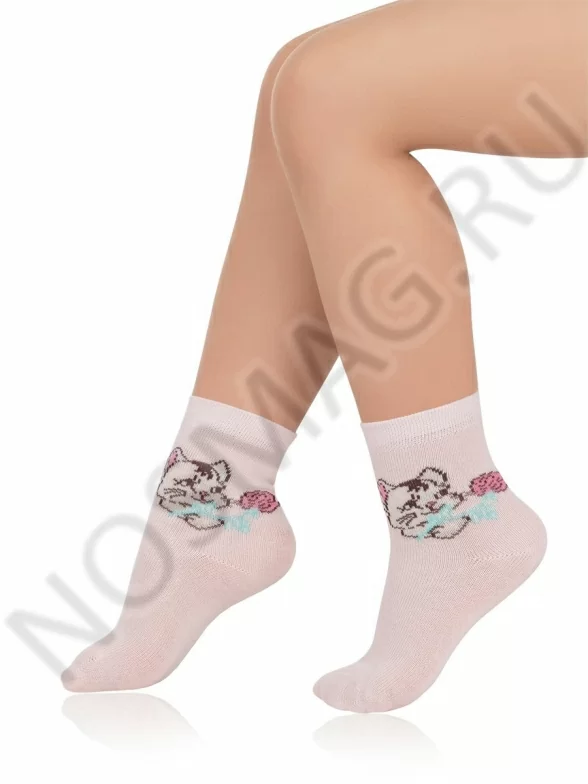 Удобные носки стандартной длины для девочек. Модель украшена изображениями забавных милых котиков, которые точно понравятся обладательнице таких носочков!