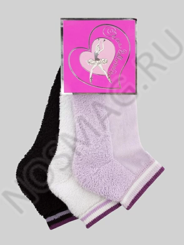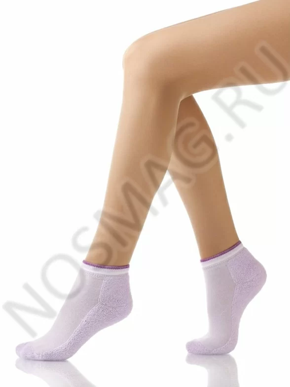 Удобные носочки укороченной длины для девочек. Носок, пятка и низ ступни модели сделаны из плотного махрового материала, благодаря чему данные носки очень удобны для дома и на выход. Трикотажные манжеты украшены полосками.