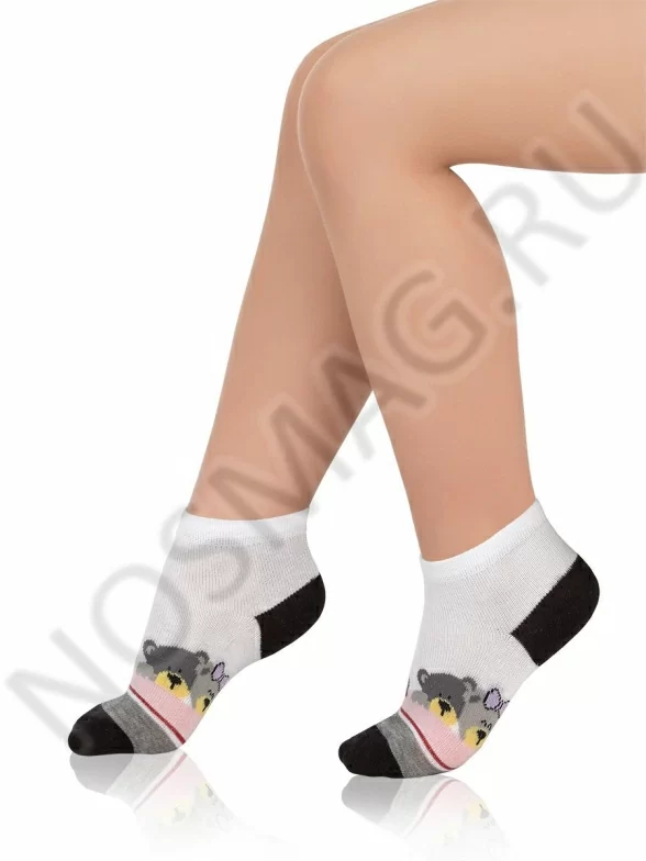 Укороченные носки для девочек, украшенные принтом с милыми плюшевыми медвежатами. Они имеют удобную резинку, а носок и пятка окрашены в контрастный цвет, что подчёркивает дизайн модели.
