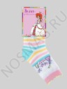 Носки для девочек, украшенные полосками в пастельных цветах. Они также декорированы узором с комнатными цветами, а резинка имеет очень интересную отделку.