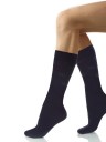 Высокие мужские носки, в составе которых преобладает хлопок. Они отлично тянутся и хорошо сидят. Модель украшена контрастным боковым узором.