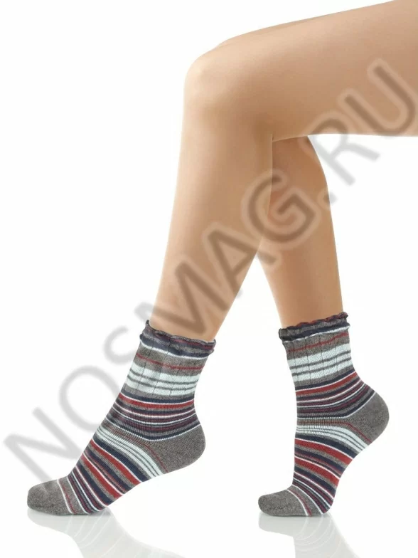 Стильные женские носки в разноцветную полоску. Они имеют анатомическую форму, а мягкая резинка не сдавливает кожу. Декоративные сборки на резинке подчёркивают дизайн носков.