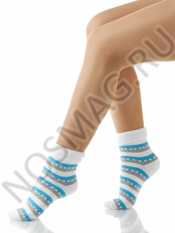 Стильные женские носки, предназначенные для дома. Ои украшены узором с полосками и пунктиром. Модель отличается оригинальной мягкой резинкой, которая выглядит как опушка.