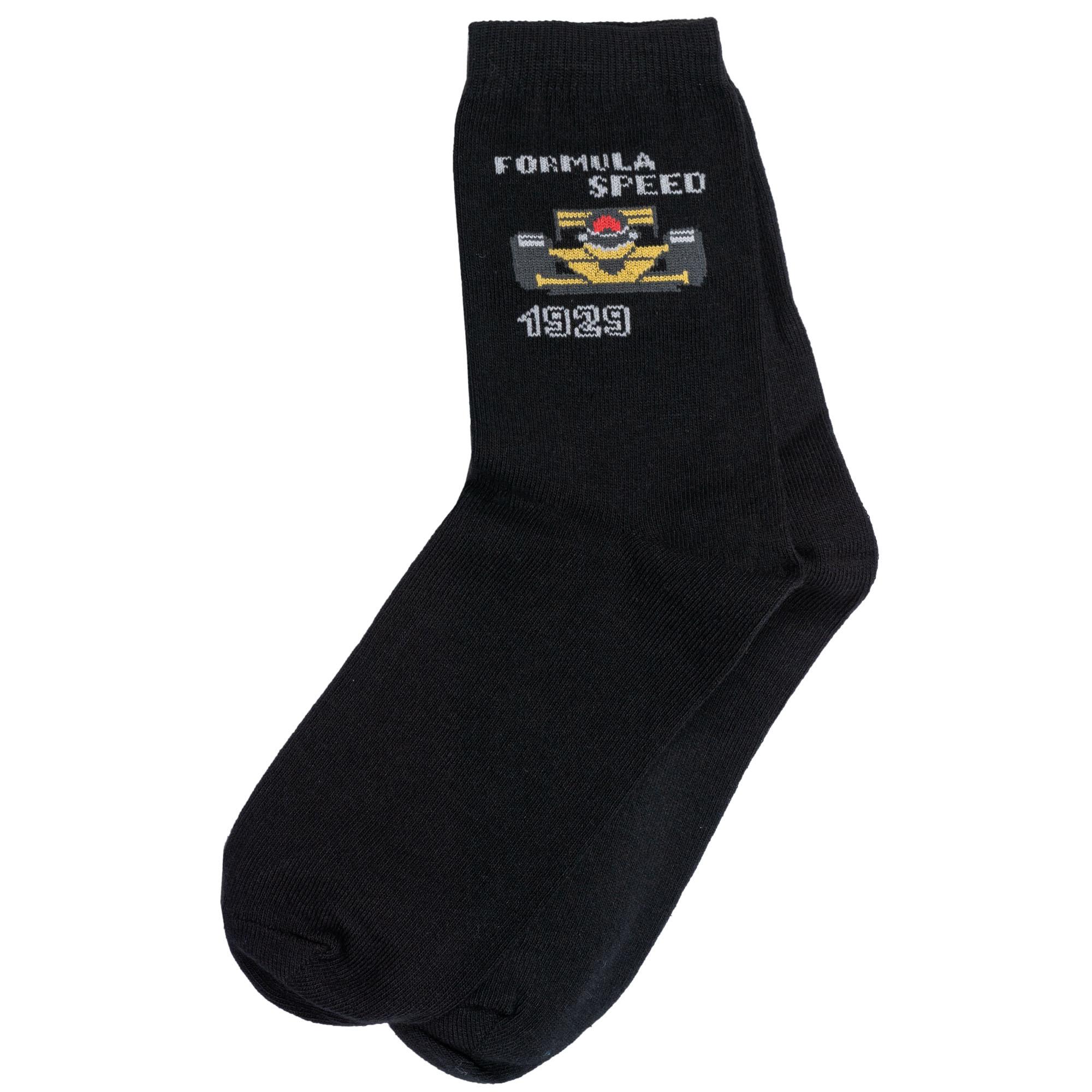 Черные демисезонные носки с рисунком гоночной машины. Модель хорошо сидит на ноге, а удобная резинка подарит малышам комфорт и будет приятна к телу. Носки на 88% состоят из хлопка, что способствует естественной циркуляции воздуха.