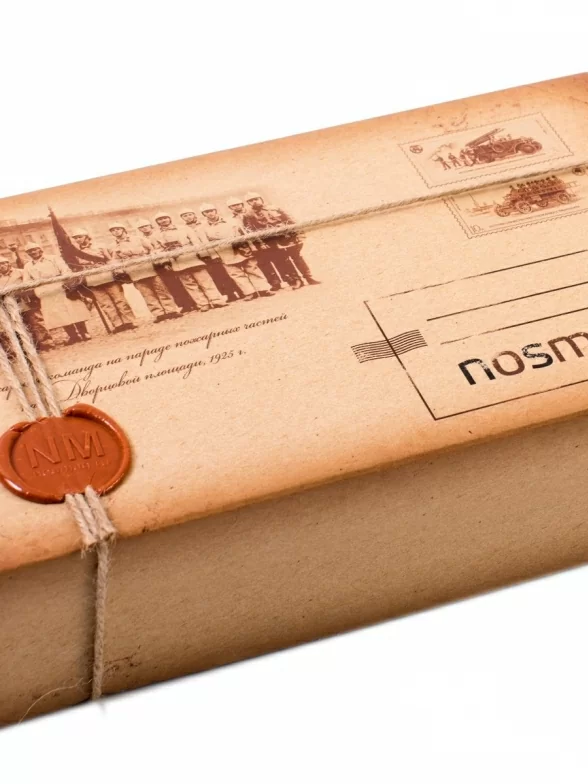 Дизайн коробки в стилистике американских почтовых отправлений 20-х годов XX века.