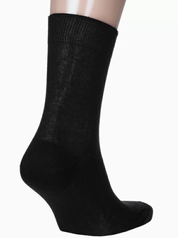 Модель средней длины с одинарным бортом (манжетом резинки). Изготовлена из 100% хлопка; главные преимущества такого состава - легкость и гигроскопичность (способность впитывать и испарять влагу). Кроме того, такой материал гипоаллергенный в отличие от хлопкового трикотажа с добавлением синтетических нитей, который изредка может вызывать аллергическую реакцию. Носки формуются на производстве под воздействием пара в бОльшем линейном размере, чем носки с добавлением синтетических нитей, поэтому могут большемерить.