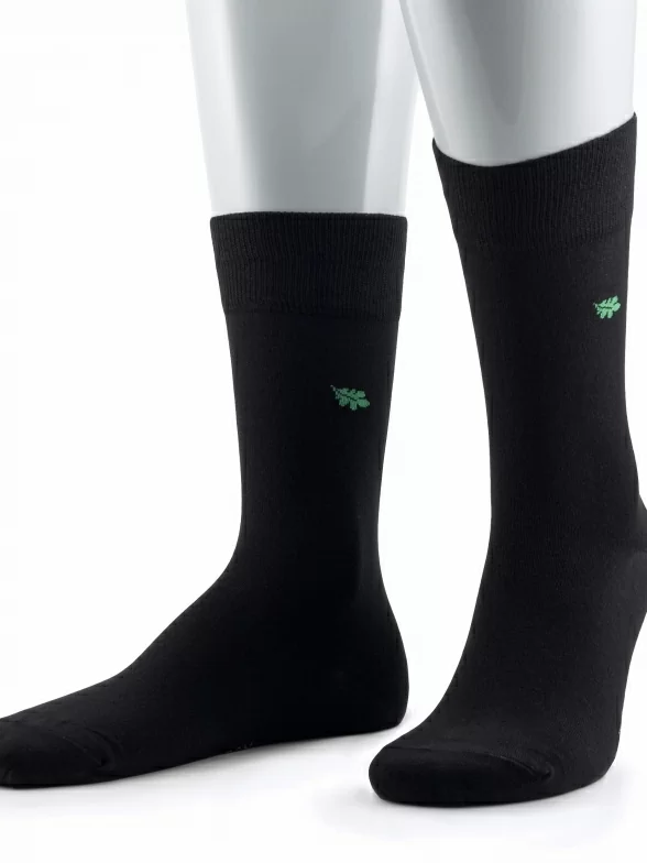 Связаны из бамбукового волокна, известного своей мягкой фактурой, но из-за которой износостойкость в носках не высока в сравнении с хлопком. Для ее повышения обязательно добавляются синтетические нити - в этом товаре полиамид; а входящий в состав эластан обеспечивает комфортную посадку. Из других преимуществ бамбука его гипоаллергенность и гигроскопичность (способность впитывать и испарять влагу), поэтому в таких носках будет комфортно не только в демисезонный период, но и в летнюю жару. Процентное соотношение волокон: 80% бамбук, 17% полиамид, 3% эластан.