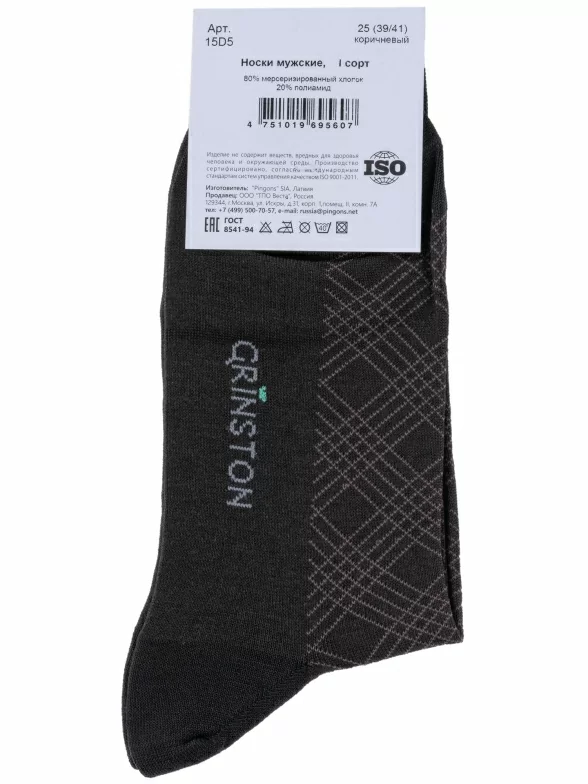 Мужские носки из мерсеризованного хлопка Grinston socks (PINGONS), 15D5, КОРИЧНЕВЫЕ