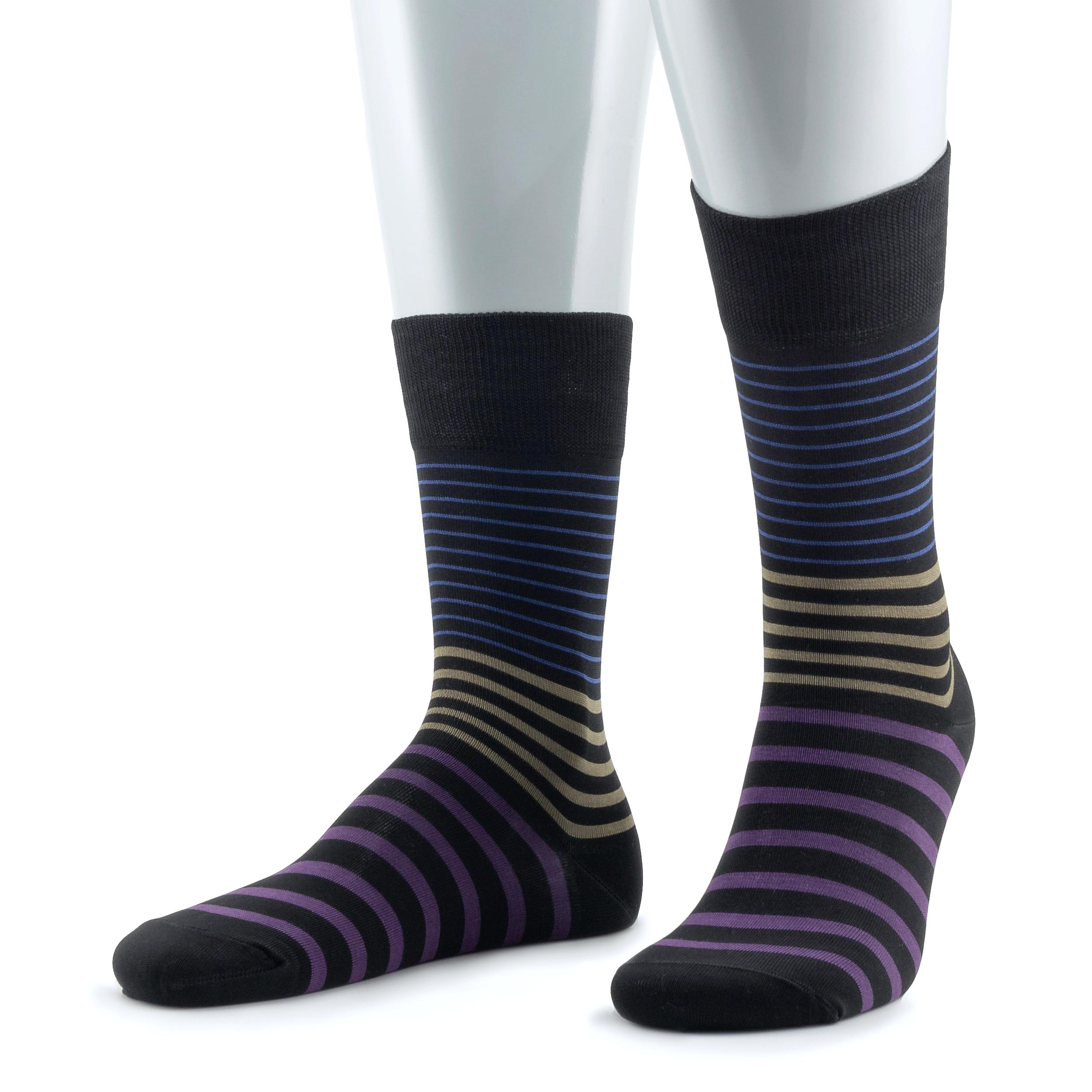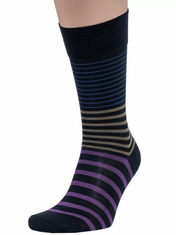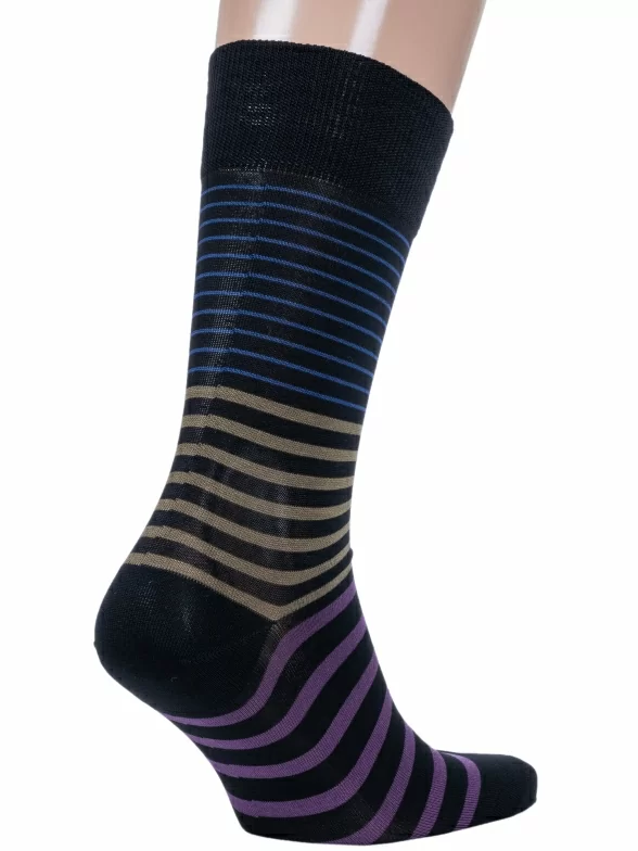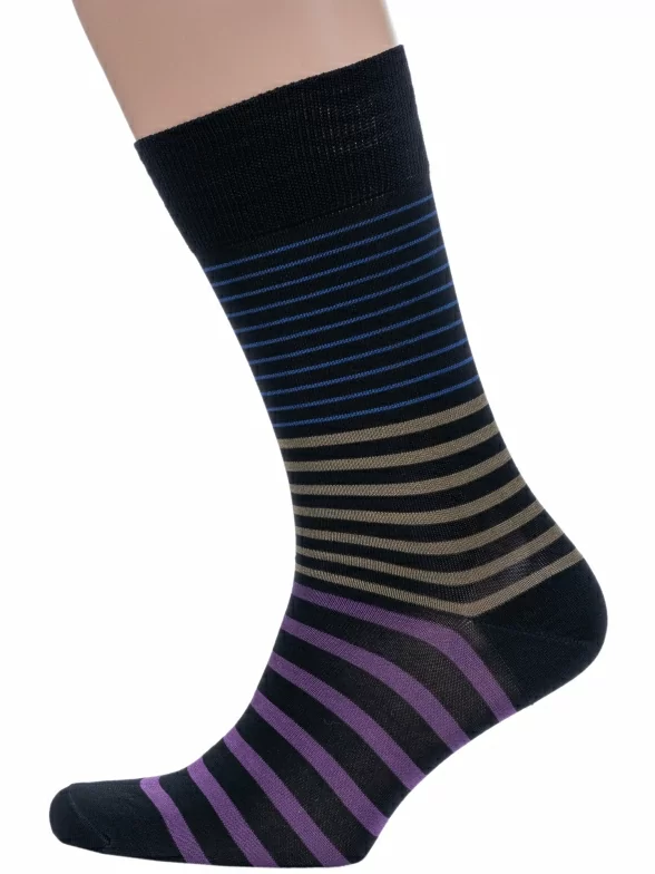 Модель средней длины в полоску с двойным бортом (манжетом резинки) и плоским малоощутимым швом на мыске.