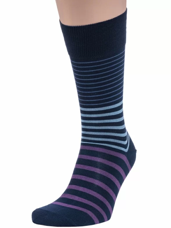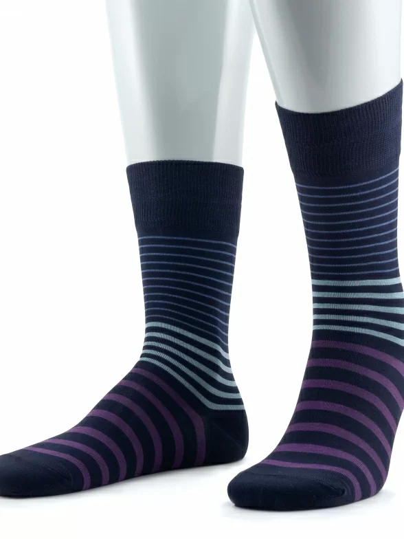 Модель средней длины в полоску с двойным бортом (манжетом резинки) и плоским малоощутимым швом на мыске.