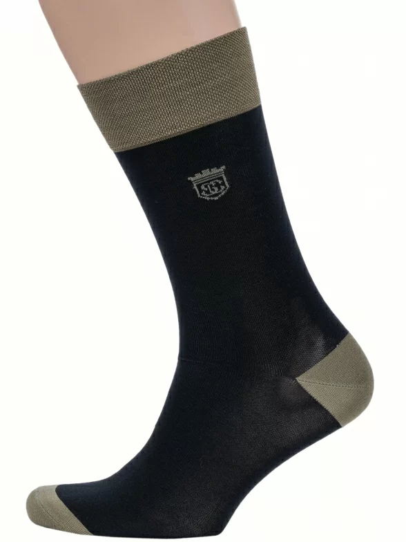 Мужские носки из мерсеризованного хлопка Sergio Di Calze (PINGONS), 15SC17, ЧЕРНЫЕ/ХАКИ