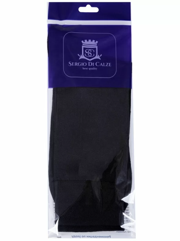 Пара черных носков артикула 15SC2 с фабричной этикеткой поставляется в прозрачном пакете с дополнительной транспортной упаковкой.