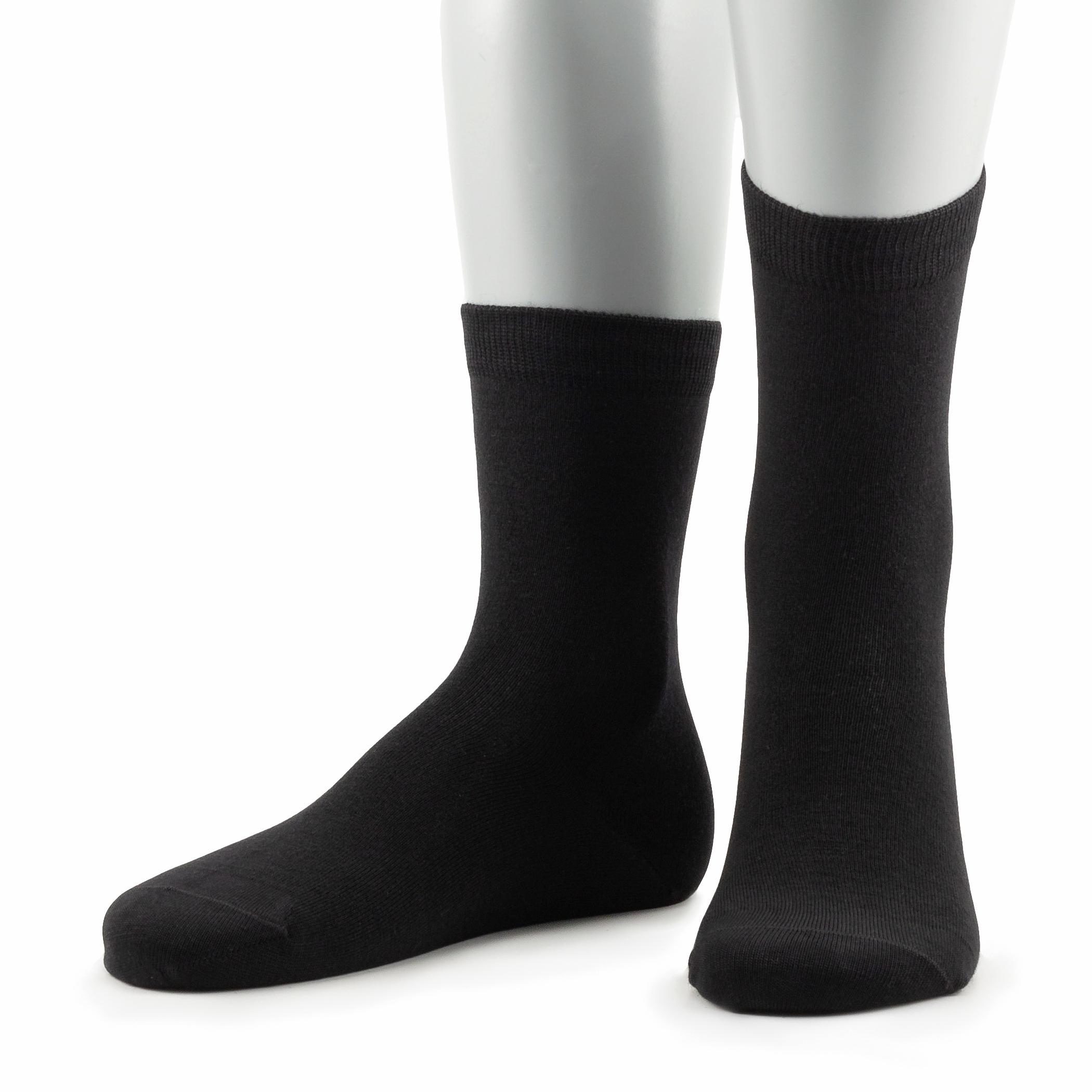 Однотонная модель средней длины и гладкой вязки имеет двойной борт (манжет резинки) и плоский малоощутимый шов на мыске.