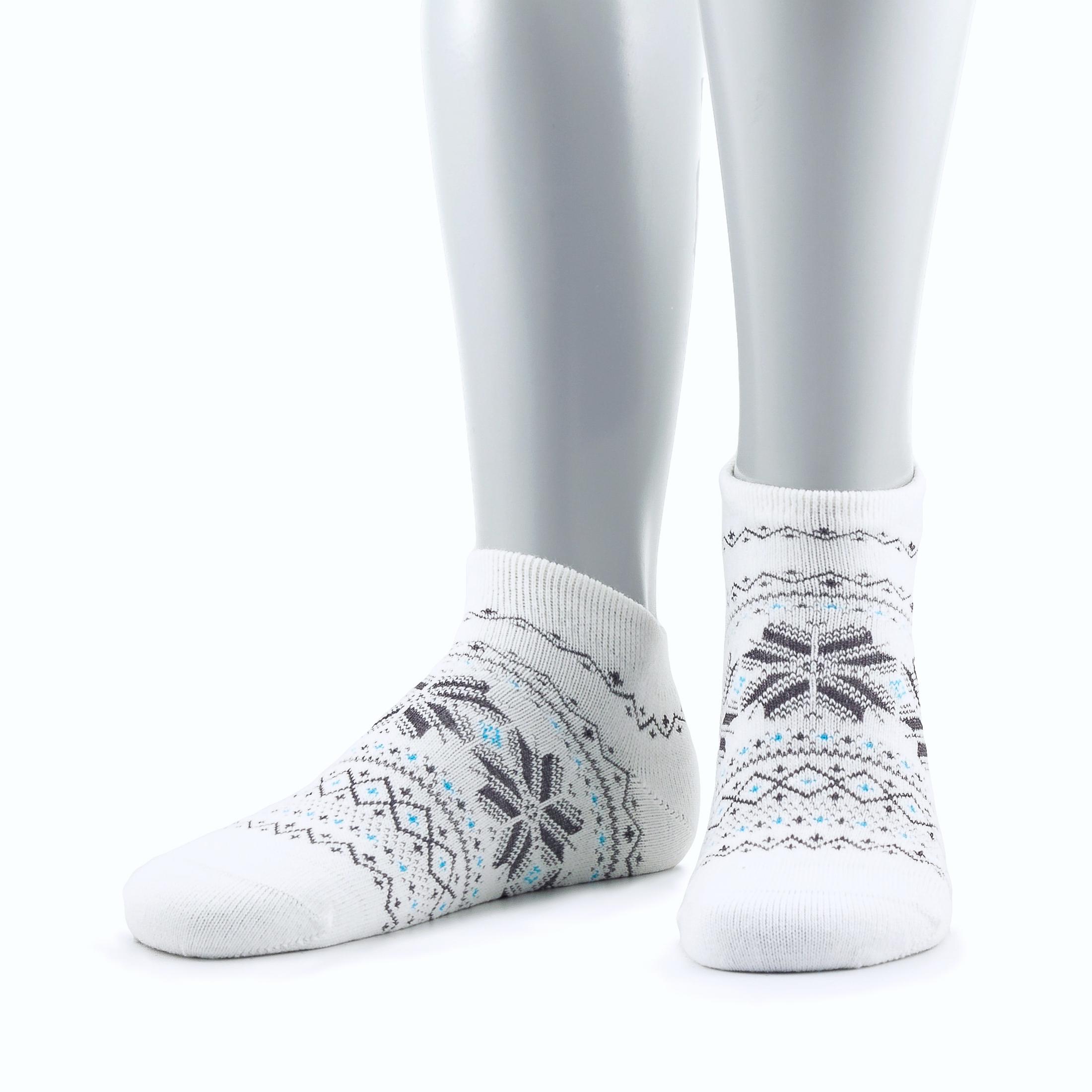 Короткая модель с плоским малоощутимым швом на мыске и двойным бортом (манжетом резинки); оформлена узором.