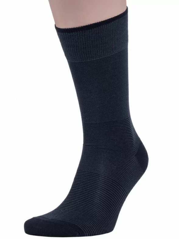 Модель средней длины в мелкую полоску с плоским малоощутимым швом на мыске и с двойным бортом (манжетом резинки).