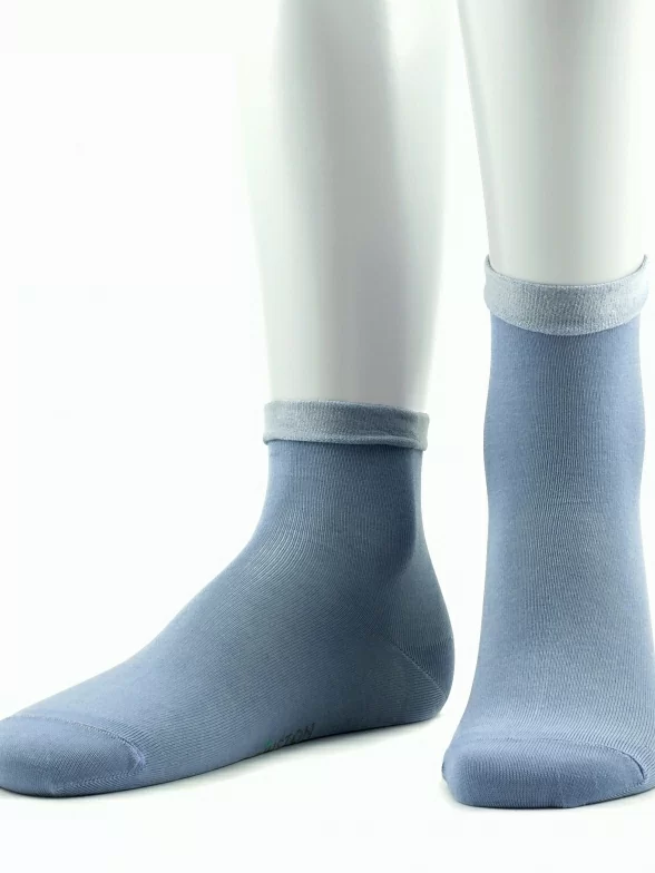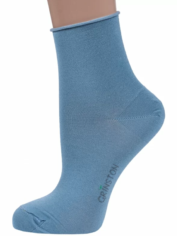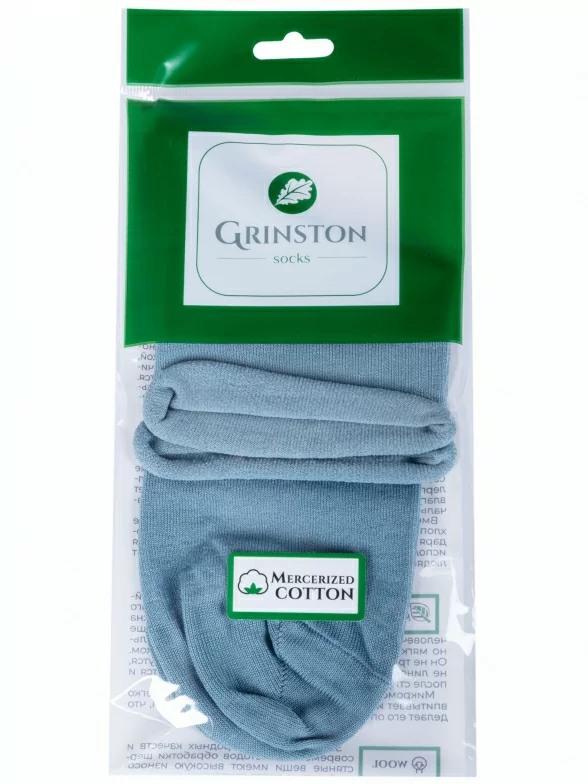 Женские носки без резинки из мерсеризованного хлопка Grinston socks (PINGONS), 15D22, СЕРО-ГОЛУБЫЕ