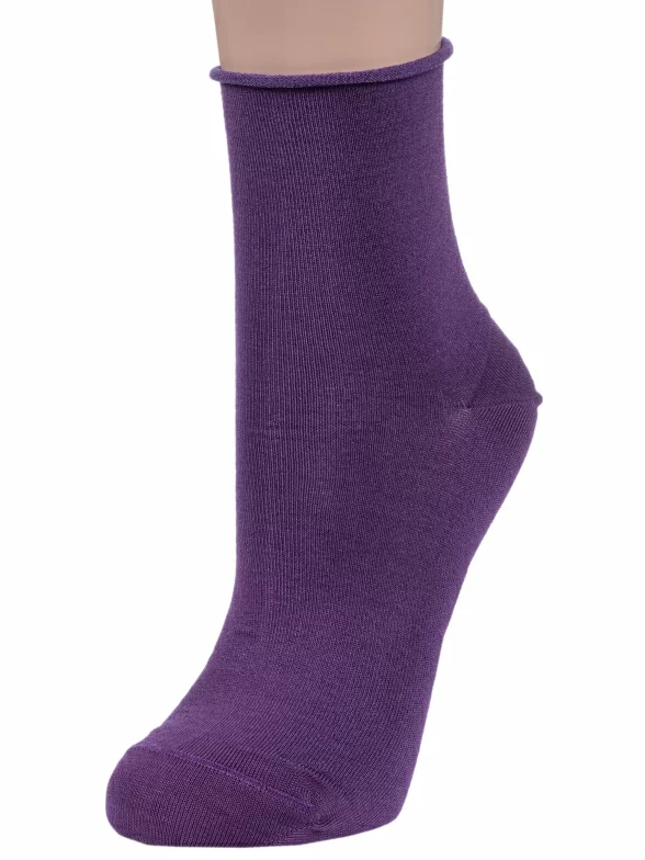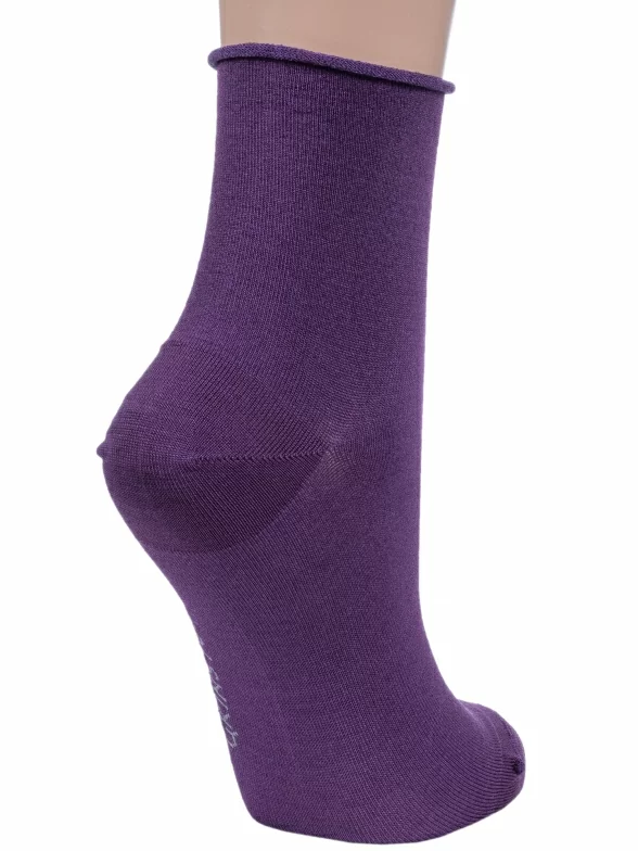 Женские носки без резинки из мерсеризованного хлопка Grinston socks (PINGONS), 15D22, ФИОЛЕТОВЫЕ