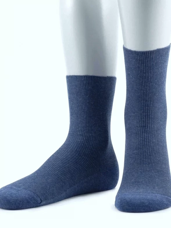 Модель средней длины с плоским малоощутимым швом на мыске и без резинки, благодаря чему носки не пережимают ногу и не нарушают кровообращение, а вязка в мелкий рубчик обеспечивает надежную фиксацию носка на ноге.