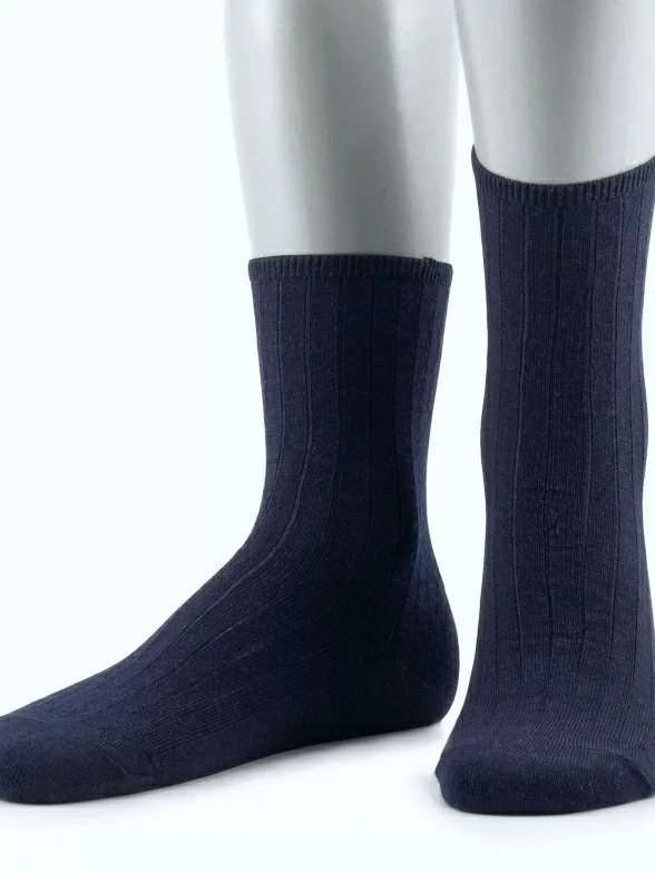Слегка укороченная модель с плоским малоощутимым швом на мыске и без резинки, благодаря чему носки не пережимают ногу и не нарушают кровообращение, а вязка в рубчик обеспечивает надежную фиксацию носка на ноге.