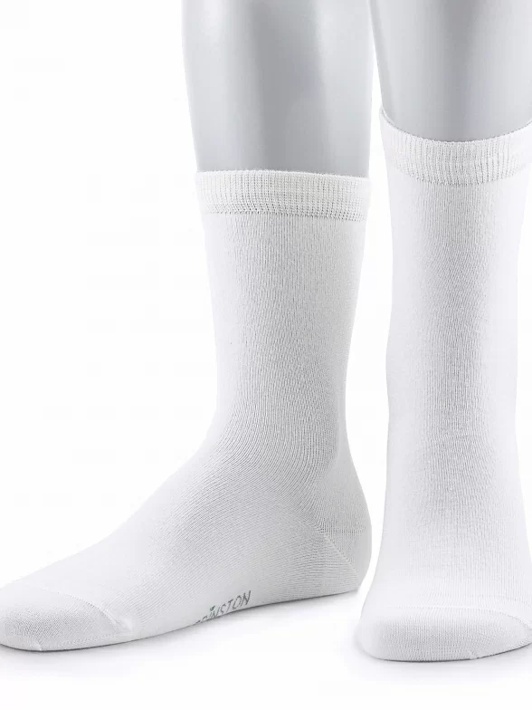 Связаны из бамбукового волокна, известного своей мягкой фактурой, но из-за которой износостойкость в носках не высока в сравнении с хлопком. Для ее повышения обязательно добавляются синтетические нити - в этом товаре полиамид, а входящий в состав эластан обеспечивает комфортную посадку. Из других преимуществ бамбука его гипоаллергенность и гигроскопичность (способность впитывать и испарять влагу), поэтому в таких носках будет комфортно не только в демисезонный период, но и в летнюю жару. Процентное соотношение волокон: 80% бамбук, 17% полиамид, 3% эластан.