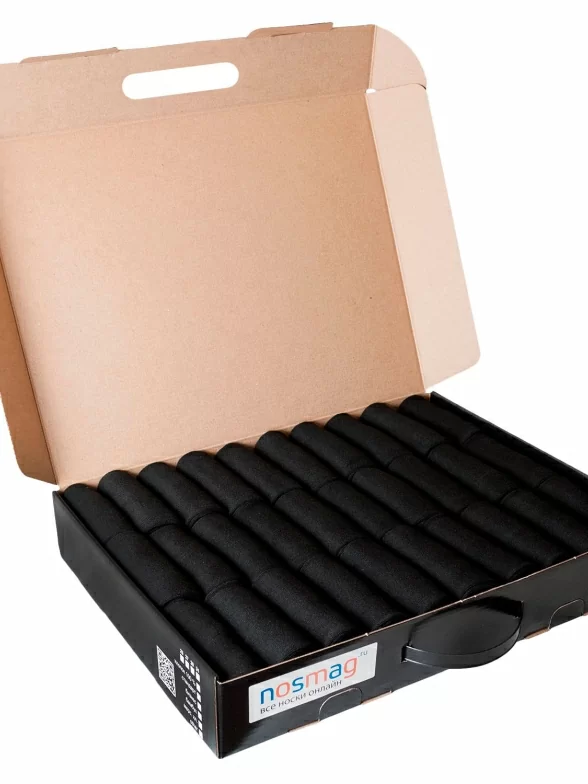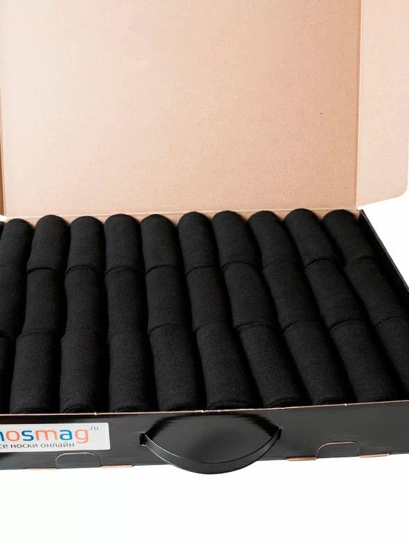 Носки аккуратными рулончиками укладываются в классический кейс, а потом в плотный транспортный картон.