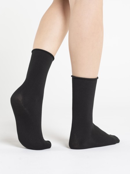 Женские медицинские носки RuSocks. Особенность данной модели - ослабленная резинка. Сочетание хлопка, полиамида и эластана делают их не только комфортными в носке, но также износоустойчивыми. Классический черный цвет будет сочетаться с любой одеждой.