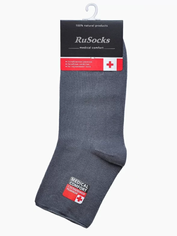 Женские медицинские носки RuSocks. Особенность данной модели - ослабленная резинка. Сочетание хлопка, полиамида и эластана делают их не только комфортными в носке, но также износоустойчивыми. Нейтральный серый цвет будет сочетаться с любой одеждой.