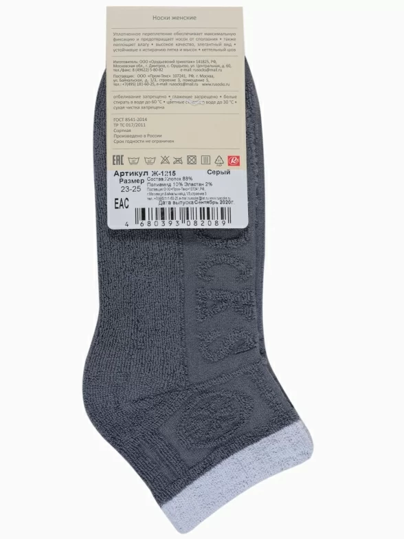 Женские махровые носки RuSocks (Орудьевский трикотаж), Ж-1215, СЕРЫЕ