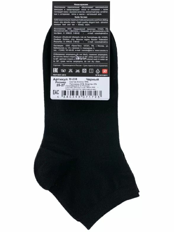 Мужские укороченные носки RuSocks (Орудьевский трикотаж), М-238, ЧЕРНЫЕ