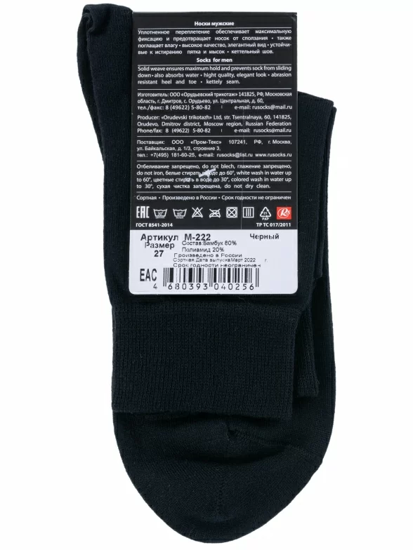Мужские бамбуковые носки RuSocks (Орудьевский трикотаж), М-222, ЧЕРНЫЕ