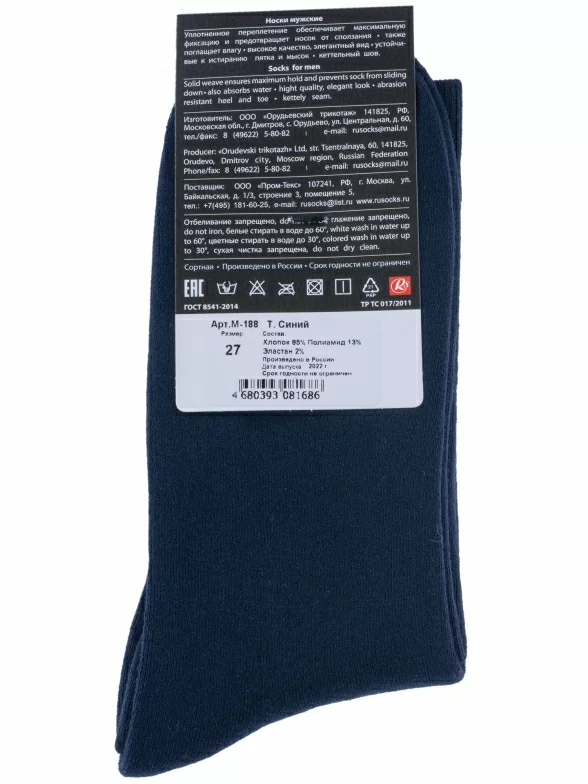 Мужские махровые носки RuSocks (Орудьевский трикотаж), М-188, ТЕМНО-СИНИЕ