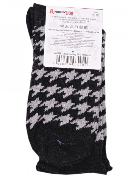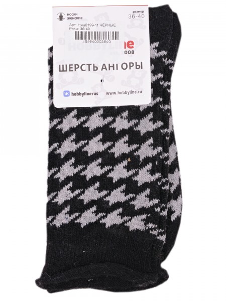 Женские шерстяные носки RuSocks (Орудьевский трикотаж) Ж-190, рис. 01, ЧЕРНЫЕ