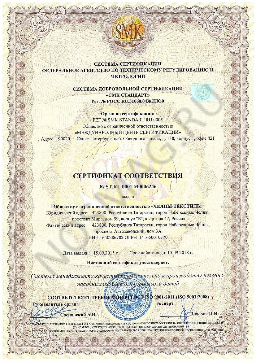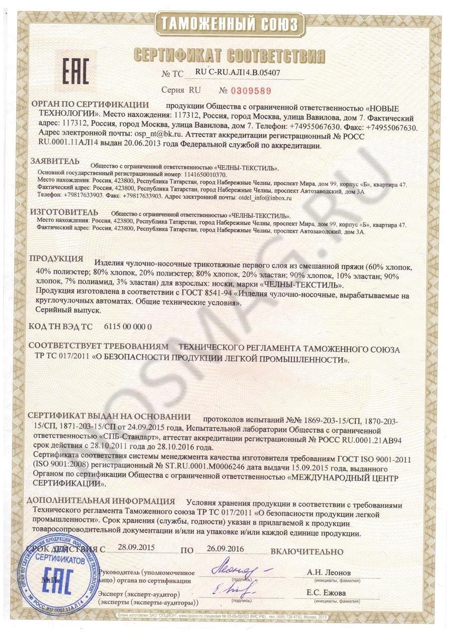 - Производитель носковфабрика «Челны Текстиль», г. Набережные Челны, Россия