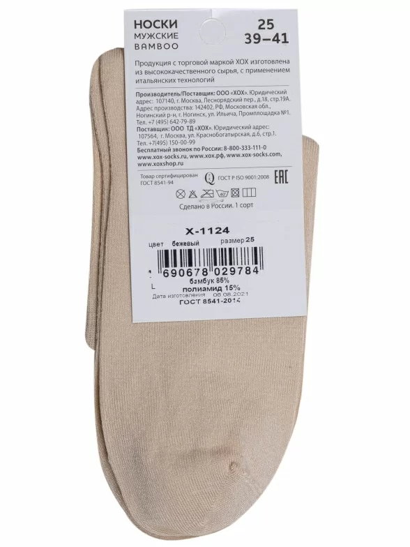 Мужские бамбуковые носки ХОХ, X-1124, БЕЖЕВЫЕ