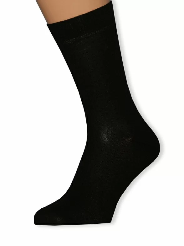 Мужские демисезонные однотонные носки черного цвета. Благодаря материалу из которого изготовлены, они долгое время держат форму и не линяют при стирке.