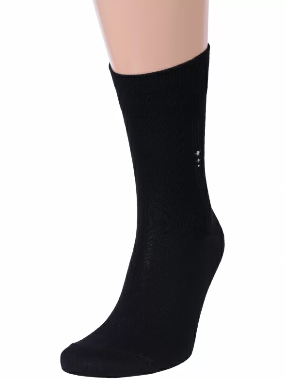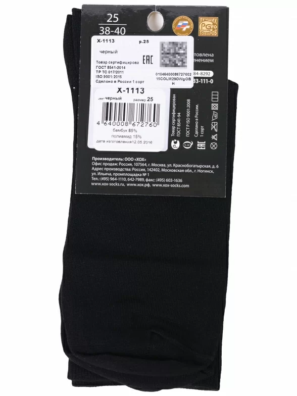 Межсезонные или летние средней длины мужские носки, цвет черный, классические, возможно бесшовные, принт (рисунок): однотонный, небольшой рисунок, состав: 85% бамбук, 15% полиамид, арт. X-1113. Производитель «ХОХ» Россия под брендом «Хох».