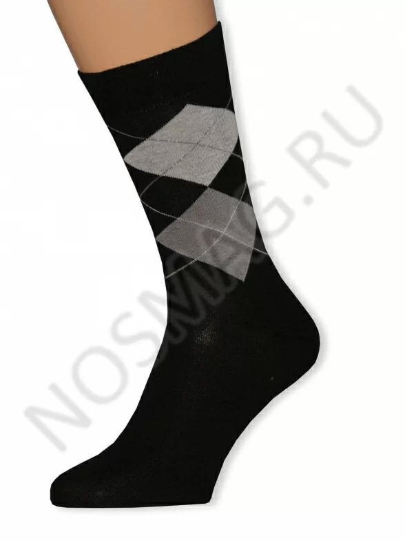 Носки черного цвета из хлопкового волокна с добавлением искусственных нитей с крупным ромбовидным рисунком.