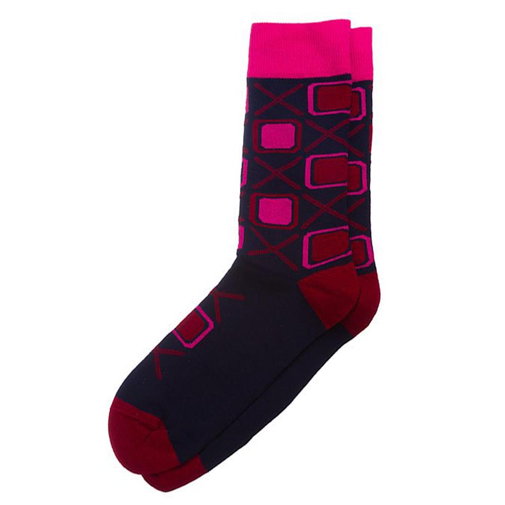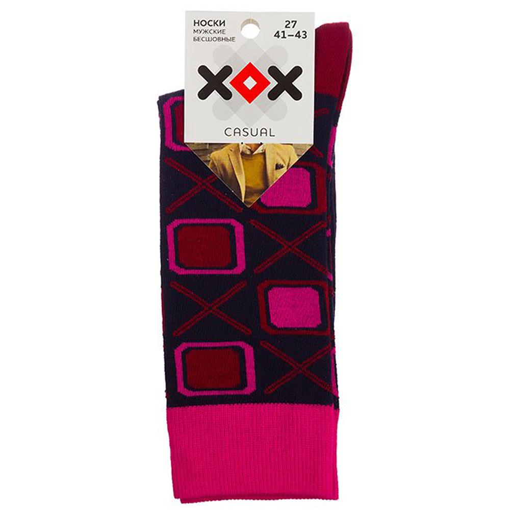Круглогодичные средней длины носки унисекс, цвет темно-синий, повседневные, возможно бесшовные, принт (рисунок): геометрия, с узором, крупные контрастные рисунки, состав: 88% хлопок, 10% полиамид, 2% эластан, арт. XF-52. Производитель «ХОХ FANTASY» Россия под брендом «Хох fantasy».