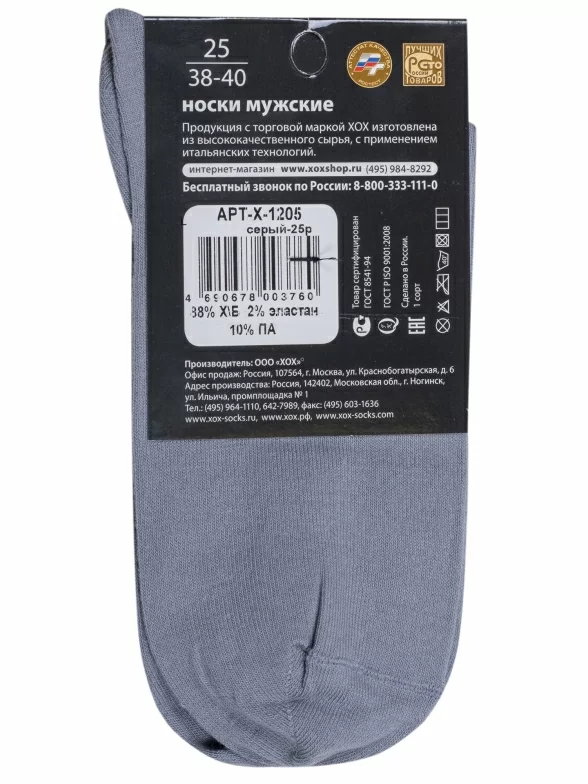 Мужские носки ХОХ, X-1205, СЕРЫЕ