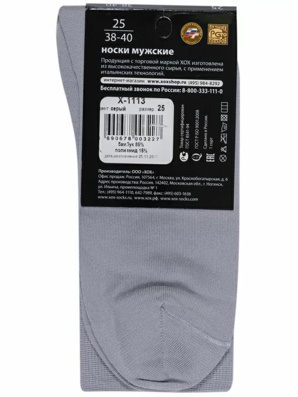 Мужские бамбуковые носки ХОХ, X-1113, СЕРЫЕ