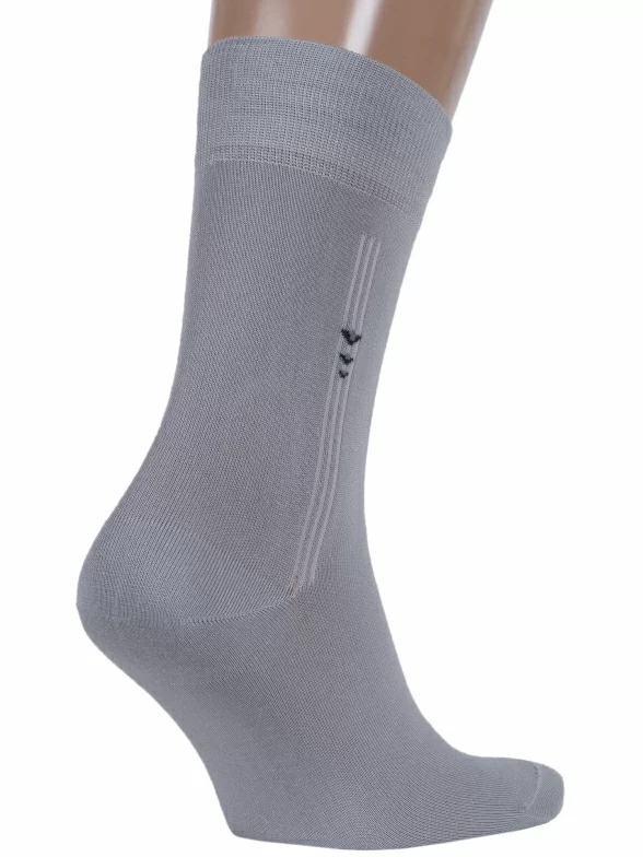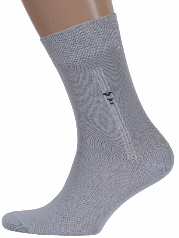 Носки серого цвета из бамбукового волокна с вертикальной полосой и небольшим рисунком на ней.
