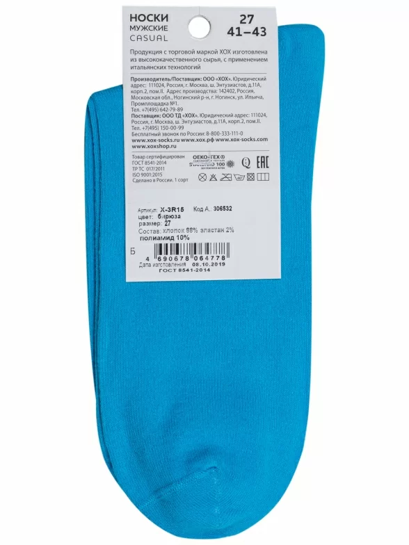 Пара носков артикула X-3R15 с индивидуальной фабричной этикеткой поставляется в плотном транспортном пакете.